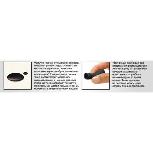 - Ваша рука не втомиться навіть при тривалому письмі, завдяки ергономічному гумовому грипу подовженої форми, який забезпечить максимальну зручність та комфорт.