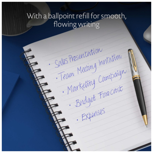 ✔ У наборі оригінальний кульковий стрижень Waterman із середньою лінією письма та чорним чорнилом.