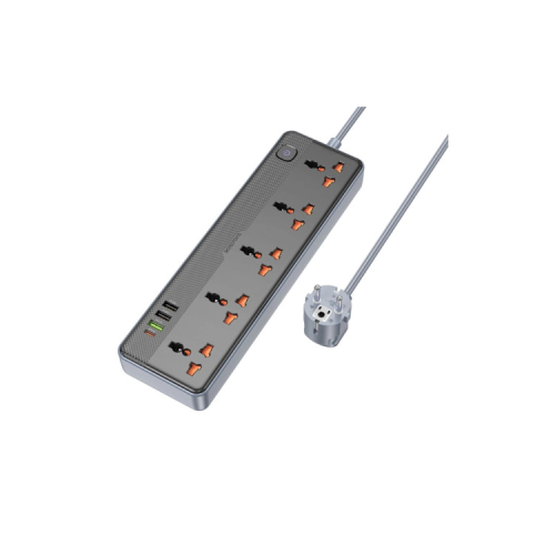 Мережевий подовжувач Borofone BAC5A Lord забезпечує максимальну універсальність зарядки ваших пристроїв завдяки різноманітності портів. Чотири порти (3 × USB-A, 1 × Type-C) та п’ять розеток AC дозволяють одночасно підключати до дев’яти пристроїв без необхідності шукати додаткові розетки. Це зручно як вдома або в офісі, так і в подорожах та відрядженнях.