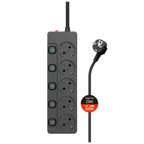 Опис Мережевий фільтр живлення ColorWay CW-PSEA52SBK 5 розеток2м (CW-PSEA52SBK)