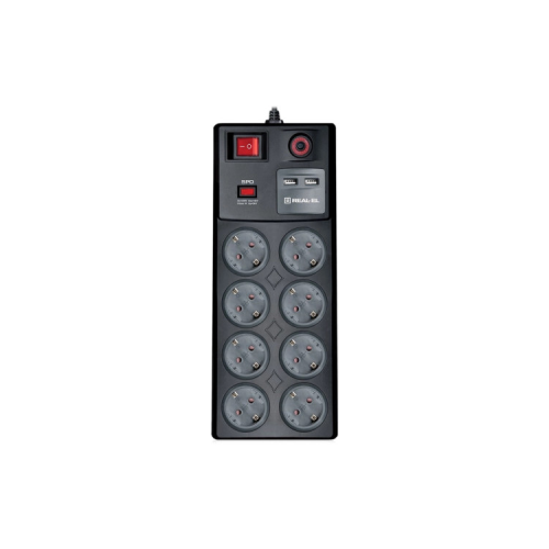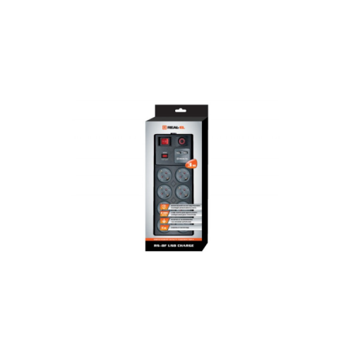 Опис Мережевий фільтр живлення REAL-EL RS-8F USB CHARGE 3m, black (EL122300004)