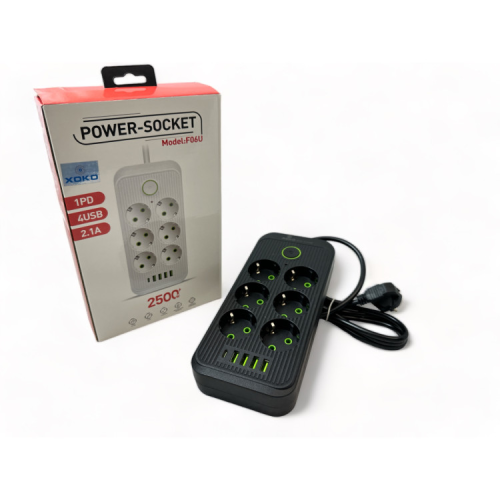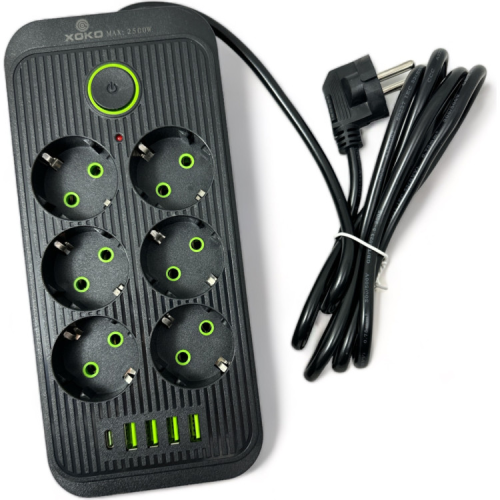 Мережевий фільтр XoKo SP-4-2-1, 2 м, 6 розетки, 5 USB– дозволить підключати до живлення кілька пристроїв, маючи лише одну розетку. Кабель довжиною 2 метри дозволяє встановити мережевий фільтр у будь-яку зручну точку. Мережевий фільтр підтримує потужність 2500 Вт. Маючи 6 розеток 4 USB і 1 Type-C, користувач зможе одночасно заряджати смартфон, планшет, смарт годинник, бездротові навушники та інше. SP-4-2-1 оснащений вимикачем та виготовлений з вогнестійкого пластику, що гарантує тривалий термін служби та високий рівень пожежної безпеки.