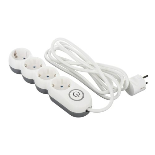 Сетевой фильтр 2Е Plus на 4XSchuko розетки Тип F (евророзетка) с заземлением, с выключателем, со шторками для защиты детей. Особый дизайн, Подсветка кнопки включения - синим.