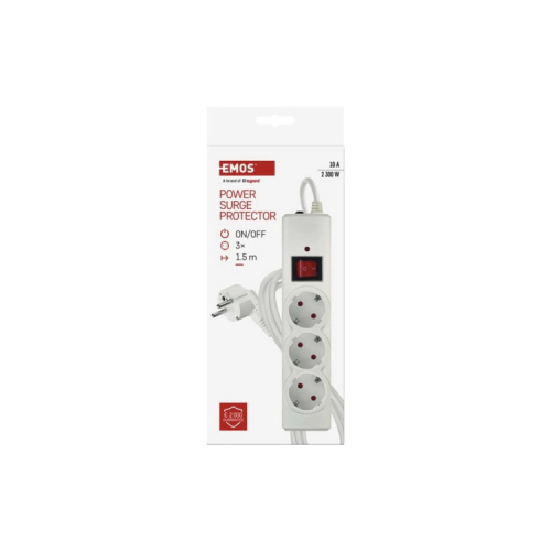 Компактный сетевой фильтр EMOS P54213 с тремя розетками обеспечивает надежную защиту подключенных устройств от скачков напряжения. Благодаря встроенному варистору с энергоуборочной способностью 380 Дж, он эффективно предохраняет бытовую технику, компьютеры, телевизоры и другую электронику от импульсных перенапряжений в сети.