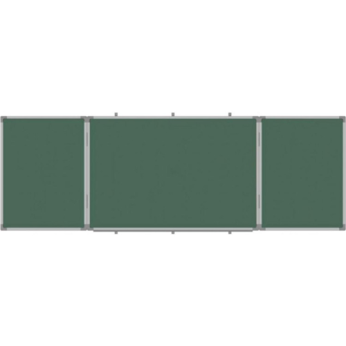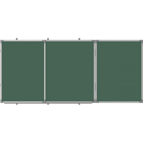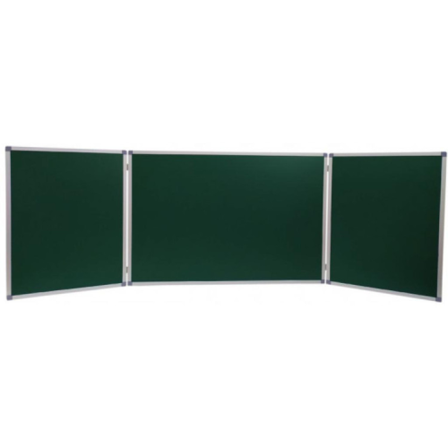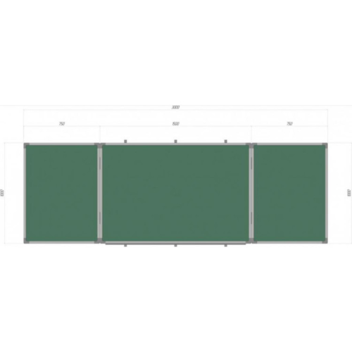 Школьная доска магнитно-меловая имеет 5 рабочих поверхностей. Каркас доски изготовлен из алюминиевого профиля, размером 20х25 мм. Рабочая поверхность изготовлена из оцинкованной стали и имеет зеленый матовый цвет для мела.