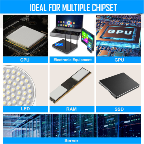 Термопрокладки Zezzio 12.8 W/mk мають багатоцільове призначення і можуть використовуватися для процесорів різного типу, відео пам’яті, твердотільних накопичувачів SSD, оперативної пам’яті, ігрового та мережевого обладнання, серверів тощо.