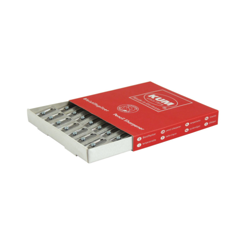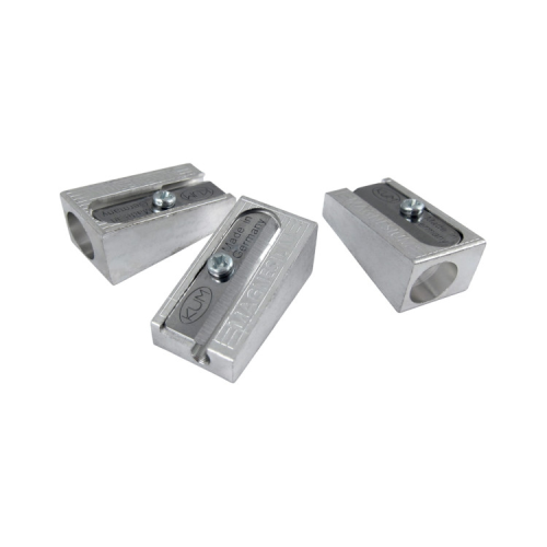 Металлическая точилка KUM с корпусом из сплава магния. Клиновидная форма. Сверхострые изогнутые лезвия с легкостью затачивают любые карандаши, даже карандаши плохого качества.