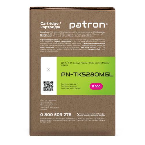 Тонер-картридж сумісний Kyocera Mita TK-5280K чорний Green Label Patron (PN-TK5280KGL) оптимальне рішення для лазерних принтерів та БФП. Основні властивості Детальна інформація: Що таке сумісний картридж? Кожен користувач друкувальної техніки стикається з питанням купівлі нового картриджа і знаходить досить велику кількість пропозицій. Як зробити правильний вибір? Розглянемо основні варіанти: Виробники друкувальних пристроїв (т.з. OEM виробники) наполягають на використанні оригінальних картриджів. Їх основний недолік - висока вартість. Сумісні картриджі виробляються різними компаніями - сторонніми виробниками. Вони дають можливість істотно заощадити на друці, проте питання оптимального балансу між якістю друку, ціною, гарантією та ресурсом картриджа залишається вибором Покупця. Тонер-картридж сумісний Kyocera Mita TK-5280K чорний Green Label Patron (PN-TK5280KGL) гарантія Ми гарантуємо 12 місяців справної роботи картриджа та проведемо заміну продукції з виробничим дефектом. Якість друку Картриджі серії Patron Green Label виготовляються з використанням нових корпусів та повністю придатні для повторної заправки. Основна відміна серії Patron Green Label від картриджів низького цінового сегменту – якість комплектуючих, що забезпечує високу оптичну щільність друку, а також ресурс, аналогічний оригінальному картриджу.