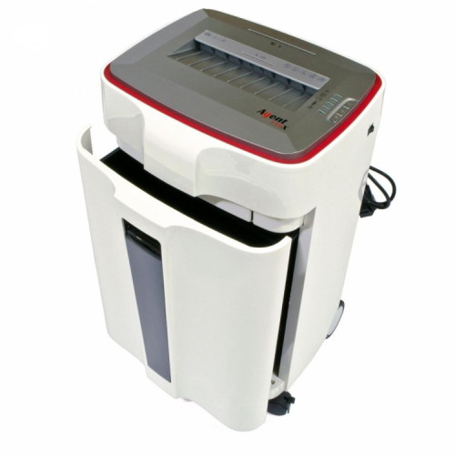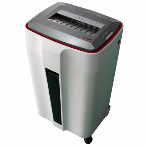 Модель рекомендована для интенсивного использования 10 и более человек. Перекрестная резка, 5-й уровень секретности, размер фрагментов 2х10 мм. Уничтожает одновременно до 16 листов бумаги (70 г\м2). Принимает документы, скрепленные скобами. Возможность уничтожения пластиковых карт и CD-дисков в отдельном слоте.