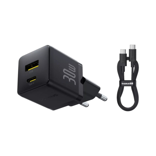 Опис Зарядний пристрій Baseus 1xUSB-C 30W + 1xUSB + cable USB-C to USB-C 60W 1.0m (P1011160A113-01)