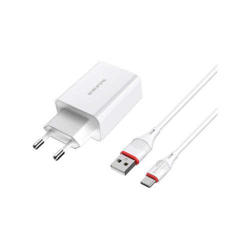 Описание Зарядное устройство BOROFONE BA21A Long Journey USB QC3.0 + cable USB to USB-C 18W White (6931474702487)