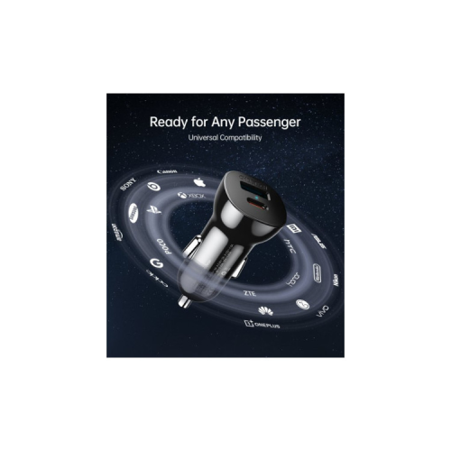 Автомобильное зарядное устройство с двумя портами. Поддерживает быструю зарядку, совместимую со всеми современными устройствами и транспортными средствами.