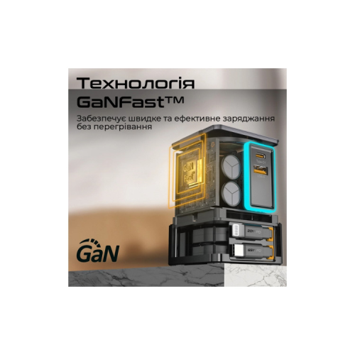 - Технологія GaNFast: Забезпечує більш швидке та ефективне заряджання без перегрівання, що дає змогу економити час та енергію.