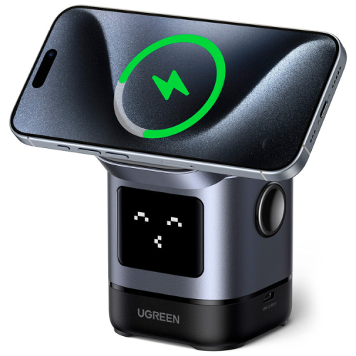 Універсальність пристрою дозволяє одночасно заряджати iPhone та AirPods, а завдяки USB-C порту, навіть Apple Watch. Насолоджуйтесь швидкою зарядкою — iPhone 15 Pro отримує до 41% заряду лише за 30 хвилин. Інтелектуальний дисплей із веселими виразами обличчя робить процес зарядки інтерактивним і приємним.