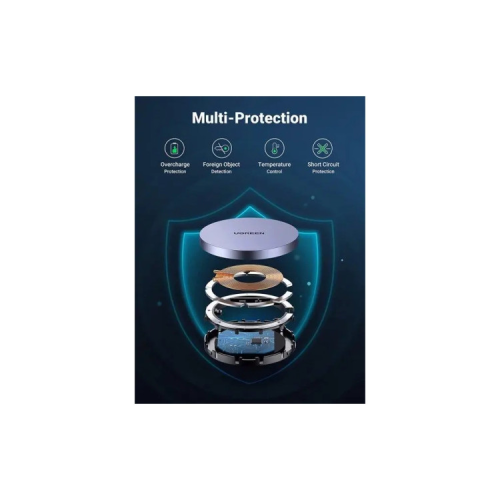 Магнітний бездротовий зарядний пристрій оснащений високоякісною металевою пластиною та вогнестійкою кришкою для ПК, а також інтелектуальним чіпом для захисту від коротких замикань, перенапруги, перегріву та перевантаження струмом.